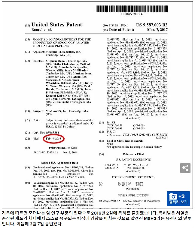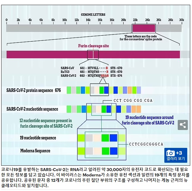 모더나가 특허 낸 이 유전자 배열이 자연유래 되었을 확률은 3조분의 1 이라고 말합니다. 즉 거의 불가능하다는 것입니다.