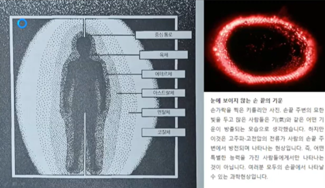 - 키를리안 사진의 의미: 우리 몸에 존재하는 에너지는 눈에 보이지 않지만, 러시아에서 1930년대 이미 특수한 카메라로 찍어 놓은 키를리안 사진을 통해 그 존재가 입증되었다.